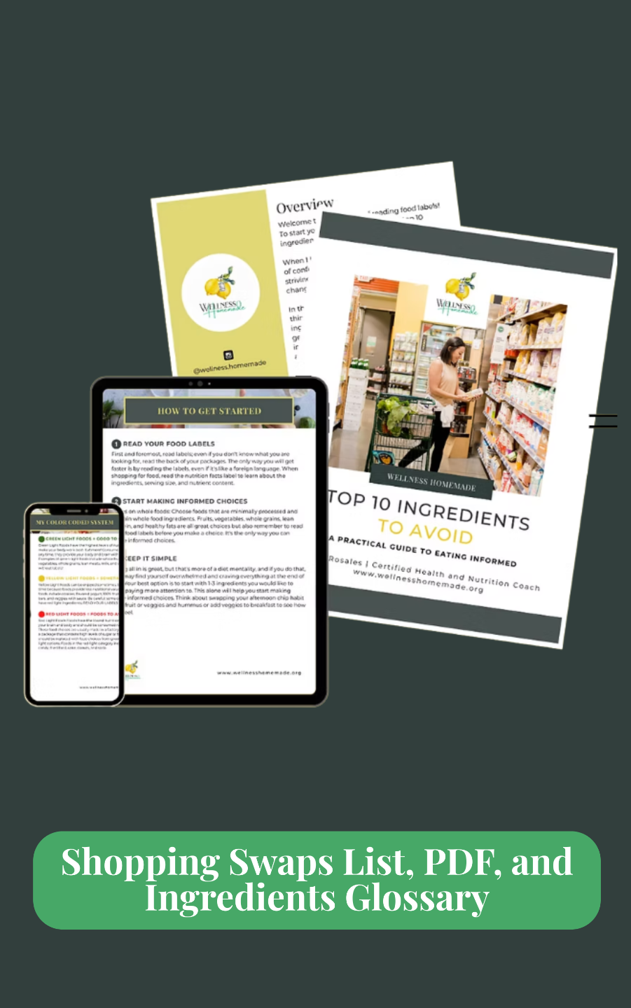 Shopping Swaps List, PDF, and Ingredients Glossary